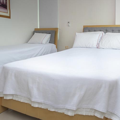 Diseñados para el confort y el descanso, cuenta con una camas sencilla y una full, Tv por cable, WiFi, un escritorio de trabajo, excelente iluminación, ducha, camas confortables con lencería 100% algodón, ventanas con aislamiento acústico, kit de baño entre otros detalles para garantizar su comodidad.