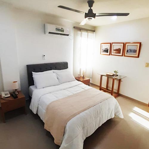 Diseñados para el confort y el descanso, cuenta con una cama doble, lencería en algodón, TV por cable, aire acondicionado, escritorio de trabajo, baño dotado con kit de aseo personal para garantizar su comodidad. Incluye desayuno para ambos huéspedes.
