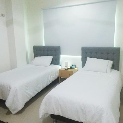 Diseñados para el confort y el descanso, cuenta con dos camas sencilla, Tv por cable, WiFi, un escritorio de trabajo, excelente iluminación, ducha, camas confortables con lencería 100% algodón, ventanas con aislamiento acústico, kit de baño entre otros detalles para garantizar su comodidad.